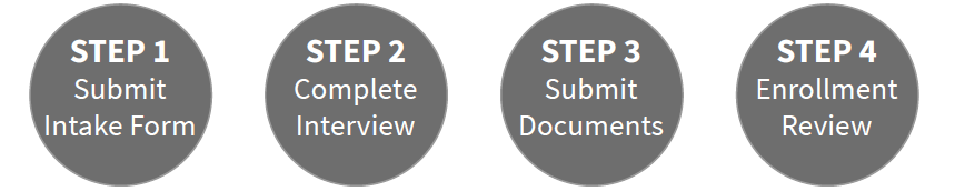 - Once the interview is complete, applicants will receive an intake packet that identifies required documentation and details next steps.